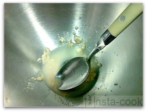 I mentre el carbassó treu l'aigua, podem preparar la barreja d'ous, crema de llet, sal i pebre, que hem de batre bé. Jo no he fet servir farina.